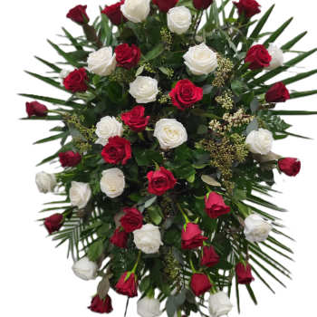 Price: $250.00 K635 Passionate Remembrances Red & White Mixed Casket Spray Product Tags: Next-day Delivery